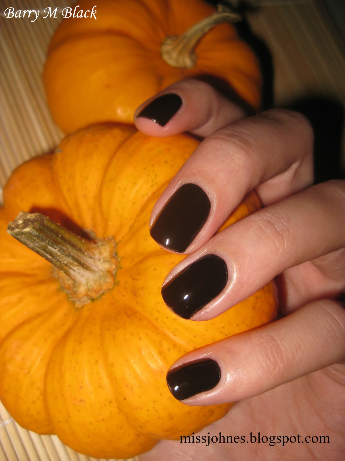 Хэллоуин в моей семье не справляют, но тем не менее дату я пропустить не смогла - идеальный день для черного маникюра! Имя выгуливаемого лака - Barry M Black.